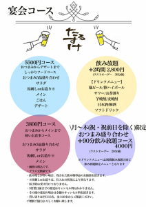 忘年会、新年会予約受付中!お電話にてお問い合わせください。